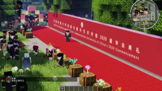 在疫情防控的大形势下,今年的毕业设计展不能同往年一样在线下展出。为了能顺利开展毕业设计展览和系毕业典礼,数字媒体艺术系的老师同学们耗时一个月左右的时间,在沙盒游戏“我的世界”中完整复原出中国传媒大学及周边环境的全貌,让同学们可以“云办展”“云红毯”。本次活动全程在虚拟版的中国传媒大学校园内进行,观众可亲自进入“中传×我的世界”客户端参与本次毕业设计展。同时本次活动也在哔哩哔哩、爱奇艺、艺书ARTBOOK、视友网、西瓜视频、微博等平台全程同步直播。