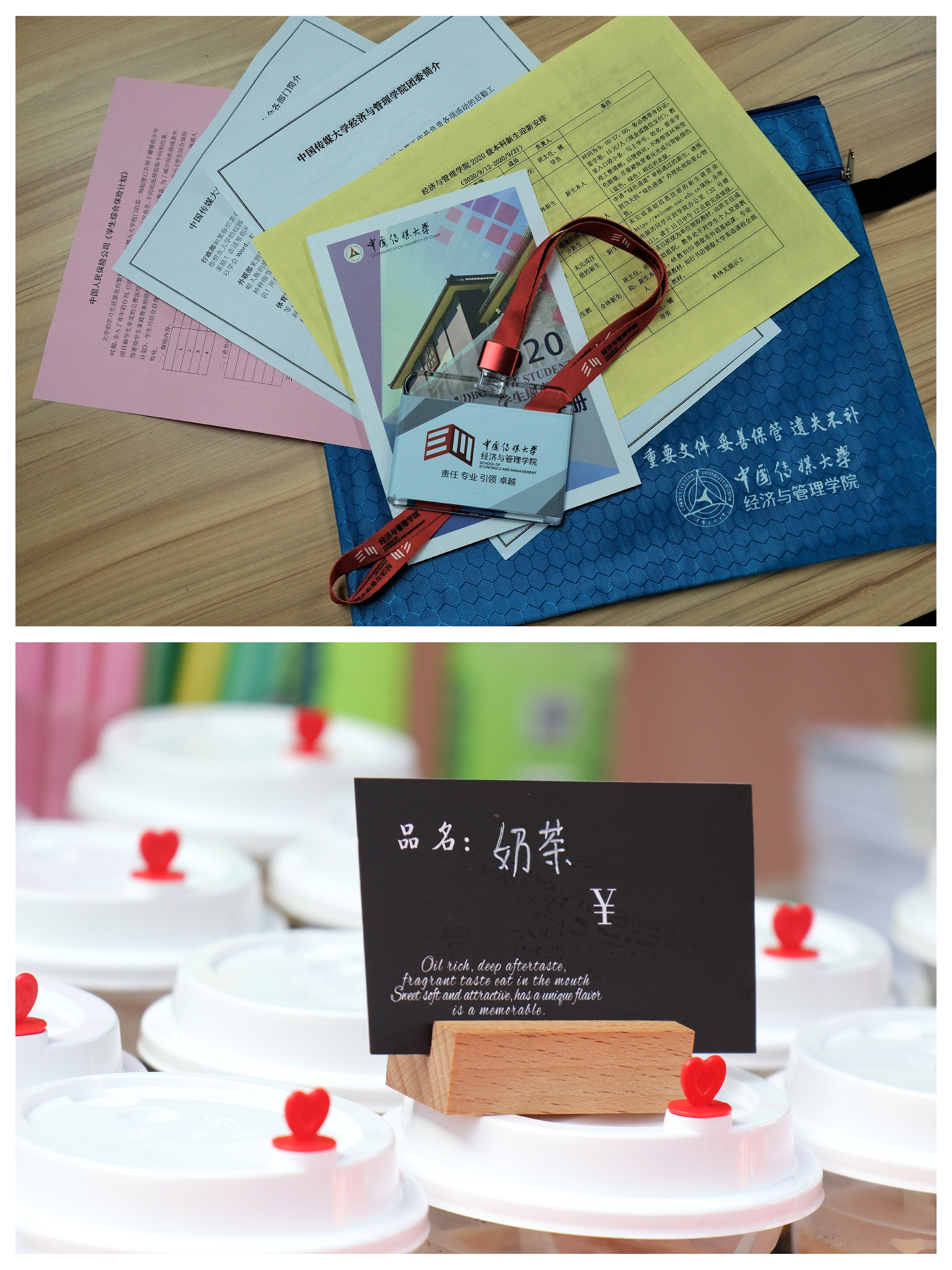 今年,学院以“一心一意”为核心概念设计2020级迎新及入学报到活动。“一心”是指学院持续关爱、关心、关注每位新同学的学习生活及成长发展。学院设计电子版《新生入学手册》,内含致新生的一封信、思政知识教育、入党流程介绍、学院团学简介、防疫贴士、安全须知等内容,介绍了学习生活的诸多注意事项,帮助新生尽快融入校园、进入角色。学院还为新生报到提供入学时间表,方便学生了解开学活动安排,联系MBA校友提供赞助饮品缓解学生舟车劳顿,特别印制定制文件袋、一卡通卡套等小物品来增强新生对于学院的认同和归属感。