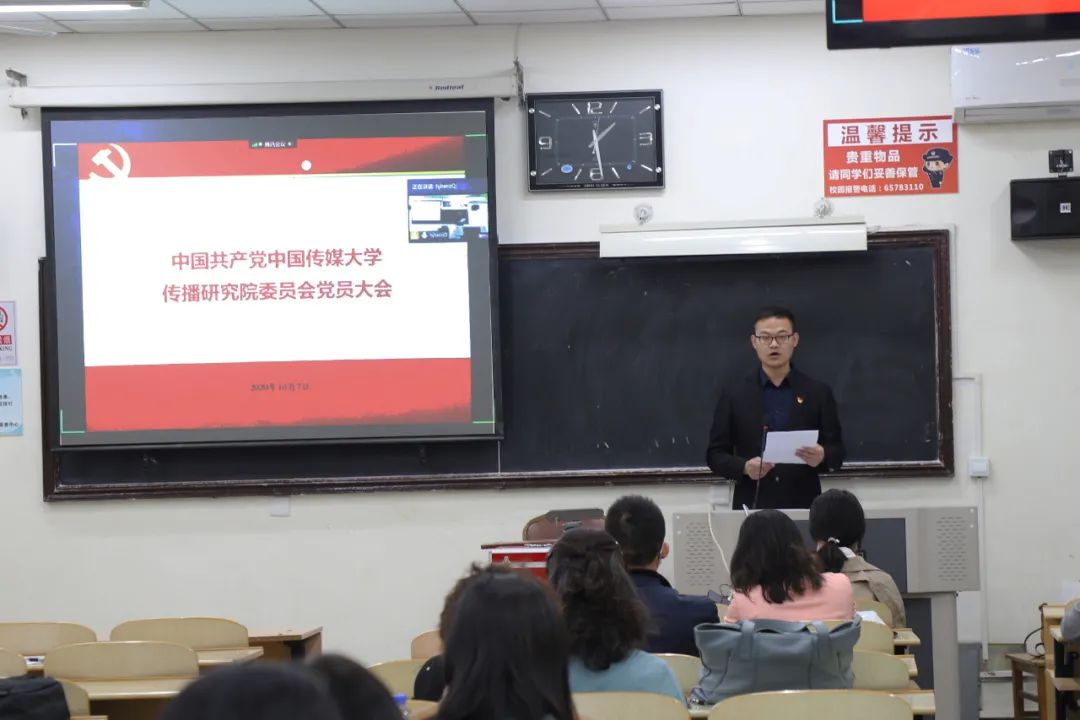 (通讯员 罗焕 涂越)10月7日下午,中国共产党中国传媒大学传播研究院党员大会在1号楼隆重召开。会议选举产生了中共中国传媒大学传播研究院委员会出席中国共产党中国传媒大学第三次代表大会代表。传播研究院院长、党委副书记李舒,党委副书记赵丹,副院长李继东等传播研究院师生党员参加大会,大会由传播研究院党委书记付长海主持。
