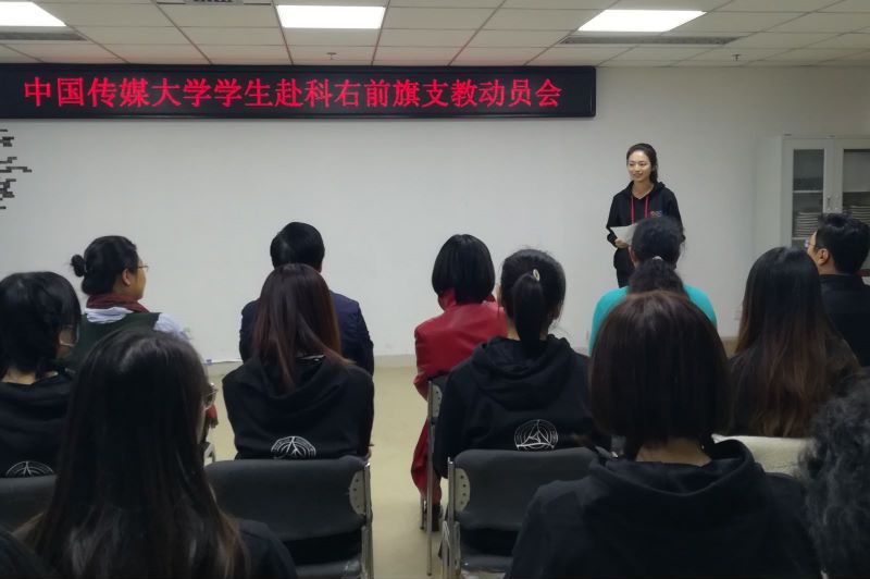 (通讯员 陈莹峰)为响应学校号召,落实定点帮扶举措,指导并动员赴科右前旗学生支教团各团员发挥专业所长,做好定点帮扶支教工作,10月16日下午4时,中国传媒大学学生赴科右前旗支教动员会在校团委209青马教室举办。校党委副书记姜绪范,党政办公室主任兼国内交流与合作处处长徐红梅,学生工作部(处)部(处)长兼校团委书记郭婧娜,校团委副书记陈莹峰,国内交流与合作处副处长杨垒垒,播音主持艺术学院党委副书记陈卓,戏剧影视学院党委副书记朱传欣,音乐与录音艺术学院党委副书记樊娜及支教团师生出席了本次动员会。动员会由杨垒垒同志主持。
