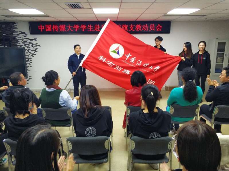 姜绪范副书记指出,学校对本次支教工作高度重视,号召同学们牢记自身肩负的重大任务,发扬中传志愿服务传统,精准实施“智志双扶”工作,全面落实好支教帮扶任务。最后,姜绪范副书记向科右前旗支教团授旗,本次支教活动正式开始。
