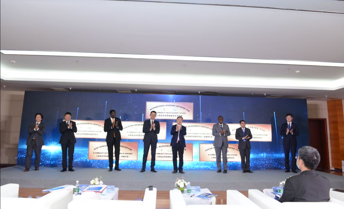 之后,大会在现场观众热烈的掌声中举行了首批7个人类命运共同体海外研究中心的揭牌仪式。这7个人类命运共同体海外研究中心分别是:人类命运共同体非洲研究中心、人类命运共同体东非研究中心、人类命运共同体东盟研究中心、人类命运共同体首尔研究中心、一带一路与人类命运共同体研究中心、人类命运共同体欧洲研究中心和人类命运共同体巴基斯坦研究中心。