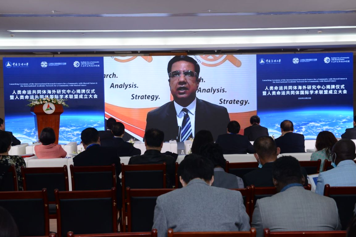 (通讯员 张苏秋 姬德强)北京时间2020年10月23日下午,由中国传媒大学人类命运共同体研究院联合德国、韩国、巴基斯坦、马来西亚、埃塞俄比亚和坦桑尼亚的7所智库、大学、研究机构、媒体机构共同举办的“人类命运共同体海外研究中心揭牌仪式暨人类命运共同体国际学术联盟成立大会”在中国传媒大学顺利召开。国外前政要,相关部委领导,中国传媒大学校领导,黑山共和国、坦桑尼亚、巴基斯坦、南苏丹等国驻华大使及参赞,潘基文基金会中方事务代表,以及海内外重要智库和大学研究机构的主要负责人、知名专家学者、媒体代表等共一百余人参加了揭牌仪式和成立大会,共同呼吁全球学界合力推动“人类命运共同体”理念的全球传播,为不断变化的世界局势提供一针“稳定剂”。