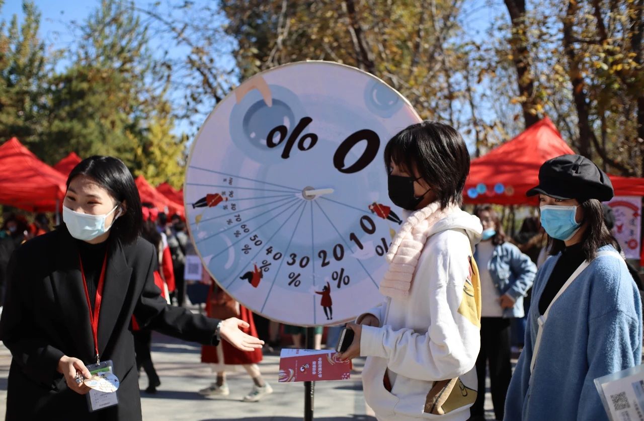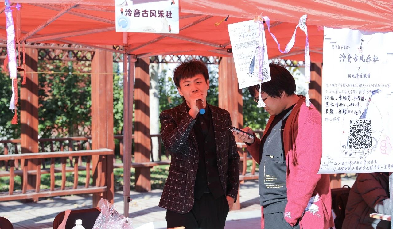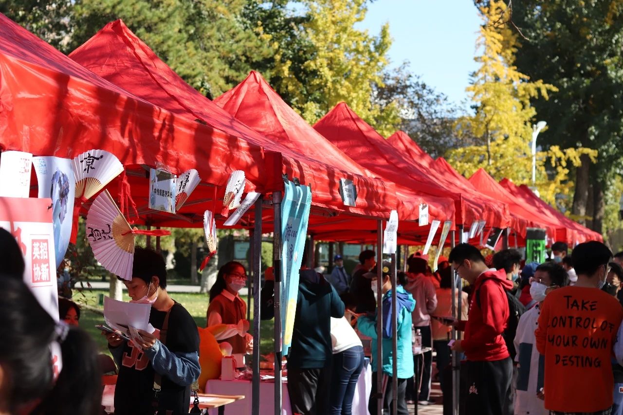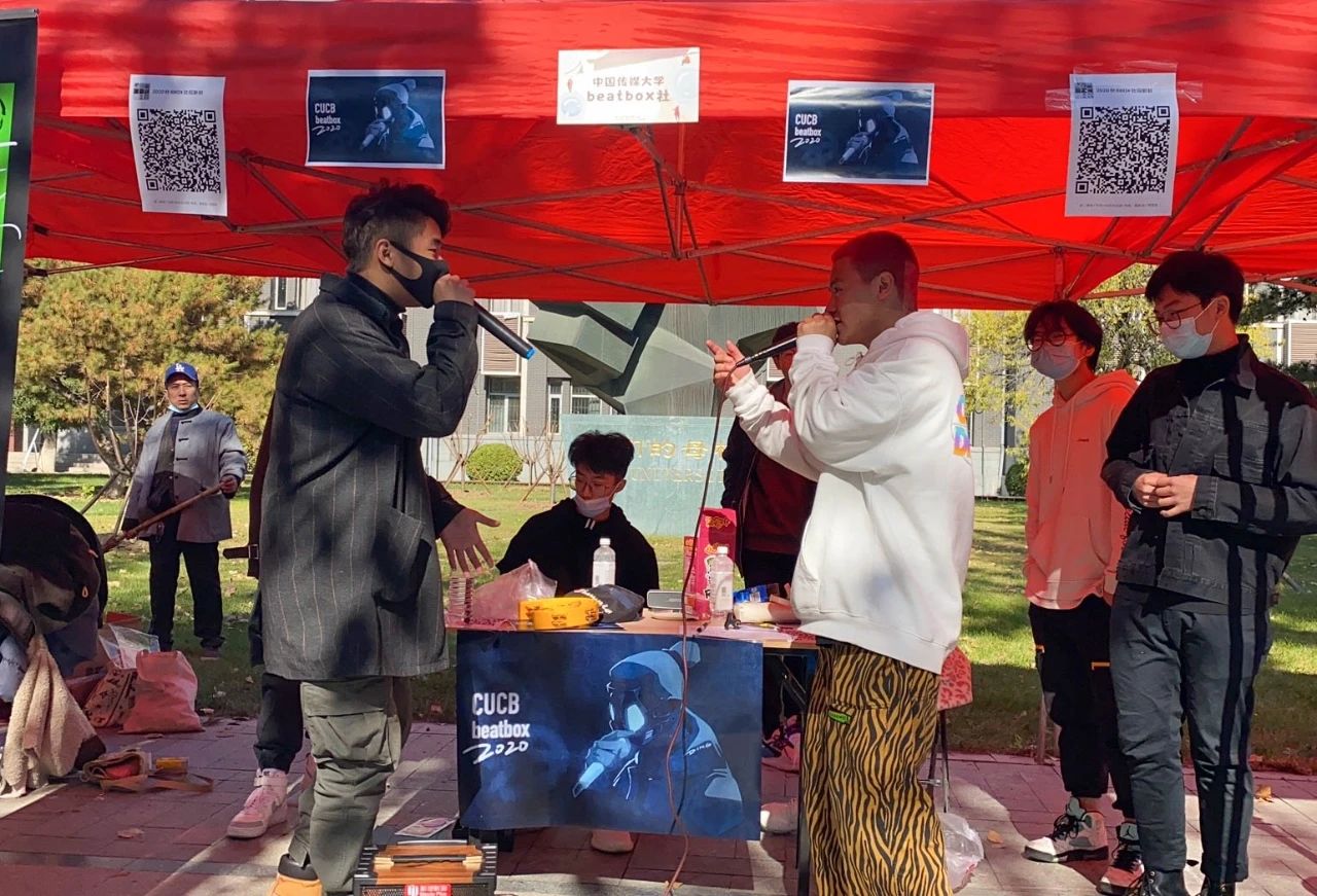 今年的会场共设约70摊位,学子们可在入口处登记并测温后,领取光盘挑战赛入场券,根据入场券上的地图选择中意的社团前去“品尝”并“光盘”。参加“百团大战”的不仅有大家熟悉的子衿汉服社、制音工厂、港澳台侨学生发展协会等老牌社团,还有中国传媒大学书画协会、演讲协会、法律协会和中传互动艺术沙龙社等今年新成立的社团。除此之外,本次“百团大战”还分别在孔子广场和西配楼北广场小舞台开展了转盘赢奖活动和多样化的社团表演。天气晴朗,场内气氛同样暖融融。