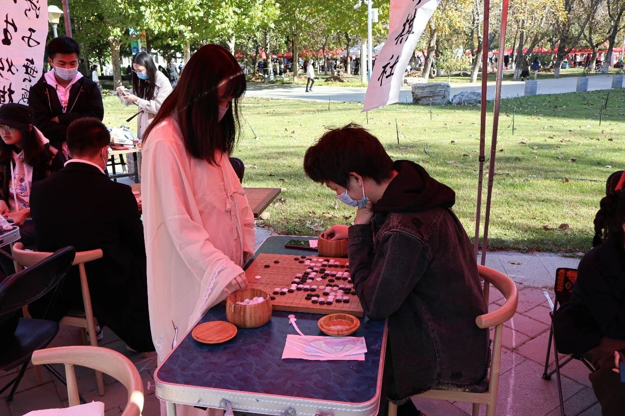 西配楼北广场上,传棋社秉持“赋棋盘以记忆,赠生命以精彩”的主题,采用现场进行棋类游戏的方式向大家展示了不同棋种的趣味和魅力。