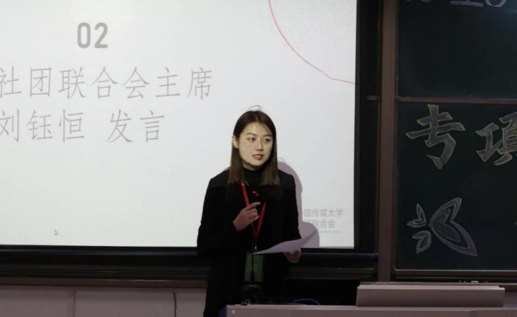 中国传媒大学模拟联合国社团介绍了基本工作情况、往期社团活动以及其对个人、团队的能力的提升意义,从社团活动形式的转变及明年参会的主要方向进行了系统的总结;武术社强调了其“强身健体、培养武德”的社团宗旨,同时还提出了在未来以线上与线下相结合的形式更好地推广武术文化的展望;TRY动漫社展示了其富有创意的活动策划;港澳台侨学生发展协会重点讲述了“粤上心头”粤语歌唱活动的准备与创新;PASSWORD街舞社从故事线的加入、舞台效果的创新、社会影响力的收获等方面介绍了社团成果,并作出未来规划。