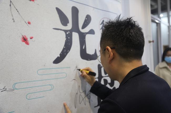 活动结束后,李智勇在活动宣传海报上留下签名并与现场人员合影留念。