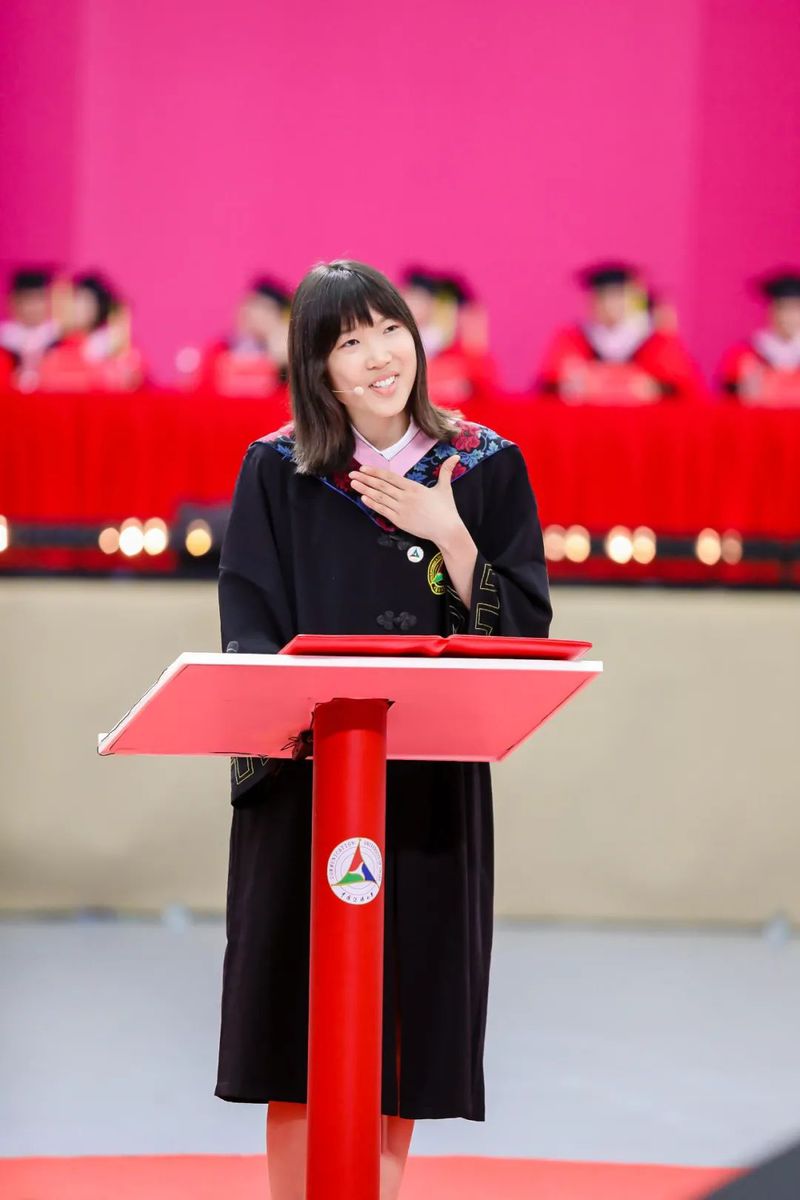 2021届尼泊尔语专业毕业生刘小莉作为学生代表发言。她通过回顾大学四年的学习生活,学习运用尼泊尔语投身国际传播的心路历程,表达了对所学专业的热爱,对母校的感恩以及离别的依依不舍之情。代表毕业生宣誓:利用专业所学知识,为国家的传播能力建设做出贡献,不负母校,不负时代,不负芳华!