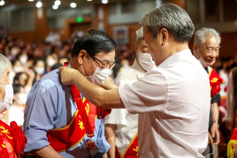“光荣在党50年”纪念章颁发场面更加温馨,廖祥忠书记等领导嘉宾一一为老党员颁授并佩戴纪念章,师生党员以经久不息的掌声向老党员们致以最崇高的敬意,将现场气氛推向高潮。