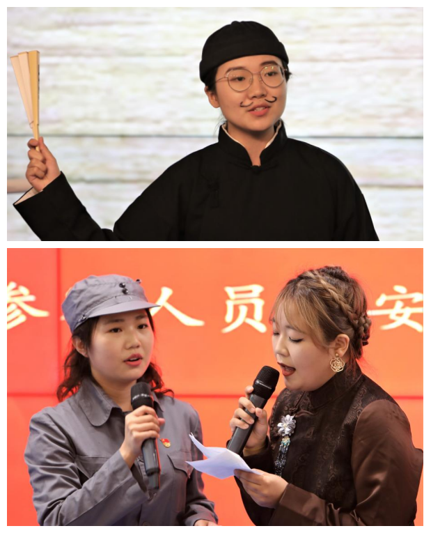 在决赛现场,各位选手努力丰富诵读形式,创新性演绎红色经典。在一段段或掷地有声,或低沉婉转的讲述中,全场师生又一次重温了百年党史中的峥嵘岁月。特别是2020级语言学系研究生班的同学们,还原当下电视剧《觉醒年代》里“活报剧”的经典片段,让大家耳目一新。