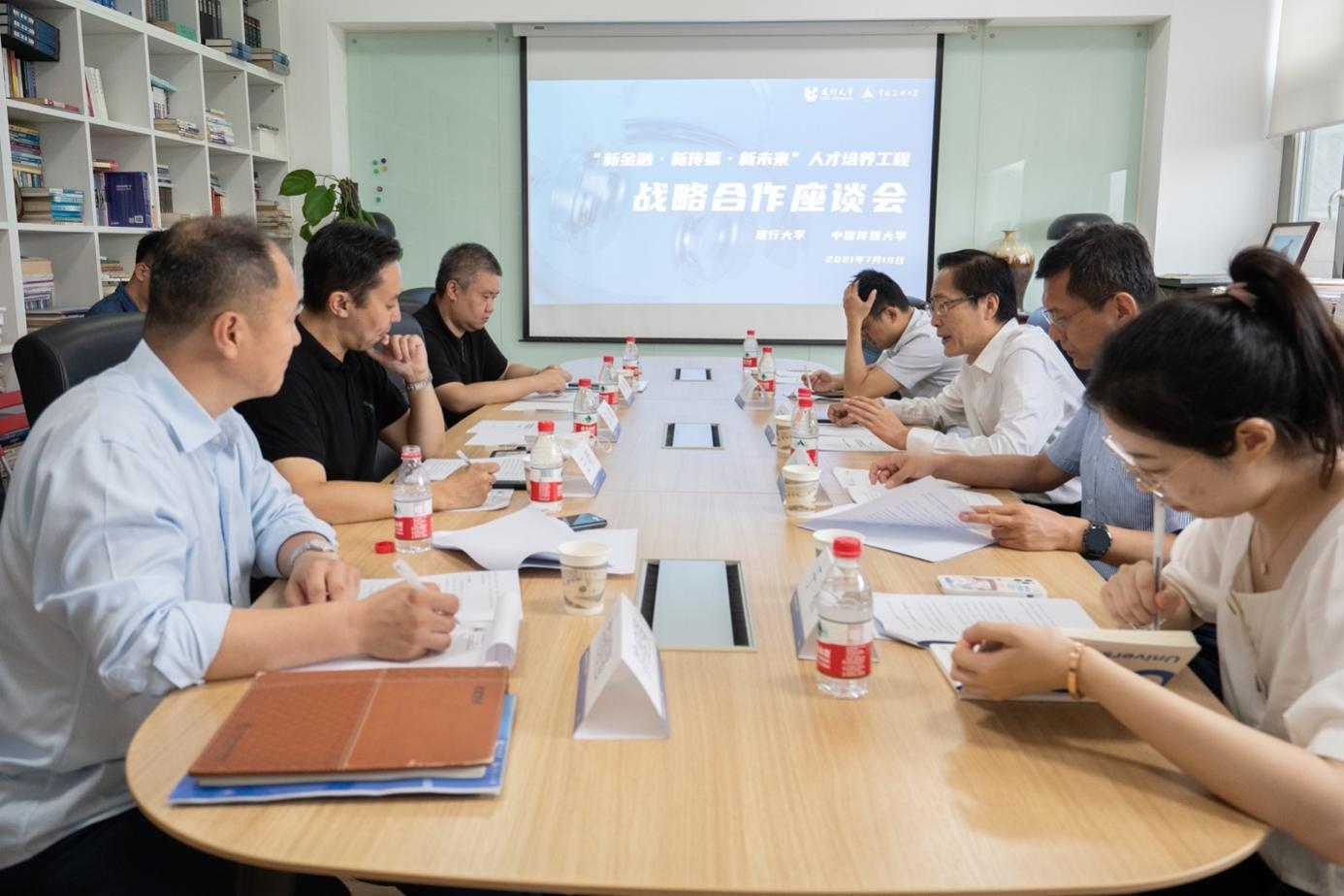 启动仪式后,双方就人才培养合作举行了座谈。大家一致认为,今年是建党100周年,是“十四五”发展规划开局之年,我国已开启全面建设社会主义现代化国家新征程、向第二个百年奋斗目标进军。新形势下,建行大学提出对“新金融、新传播、新未来”人才培养的现实需求,与中国传媒大学优质资源有许多契合之处。未来,双方将强强联合,在人才培养、产教融合、科研创新、实习就业等领域开展深度合作,携手为培养智媒新时代交叉型复合型传媒人才作出贡献。