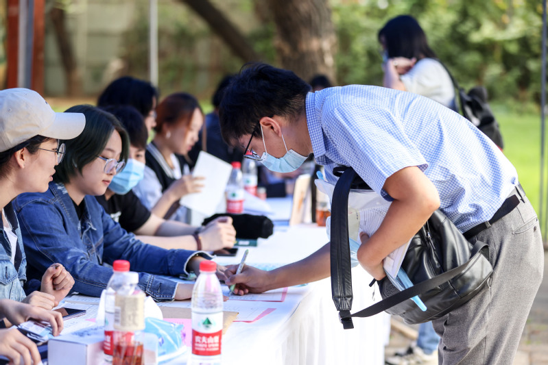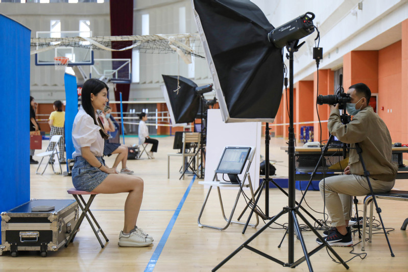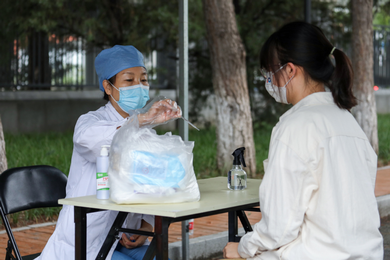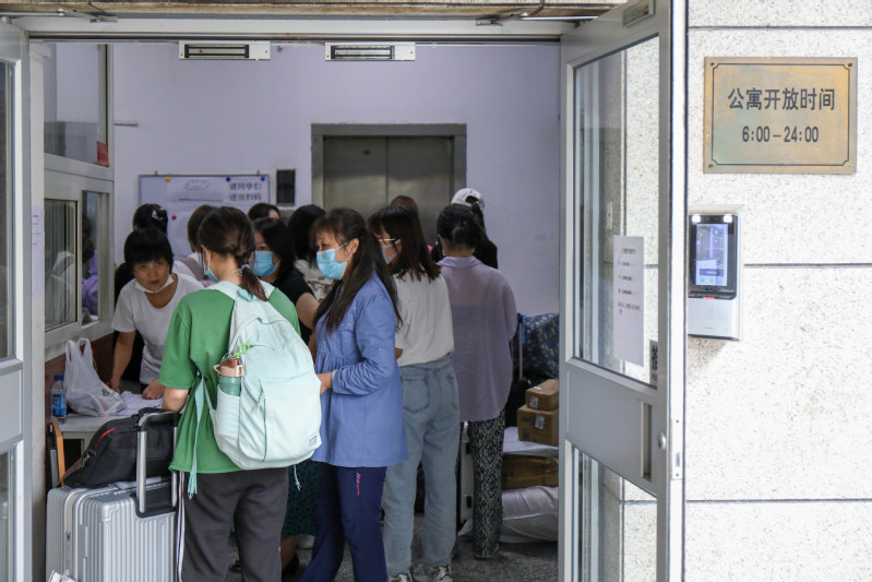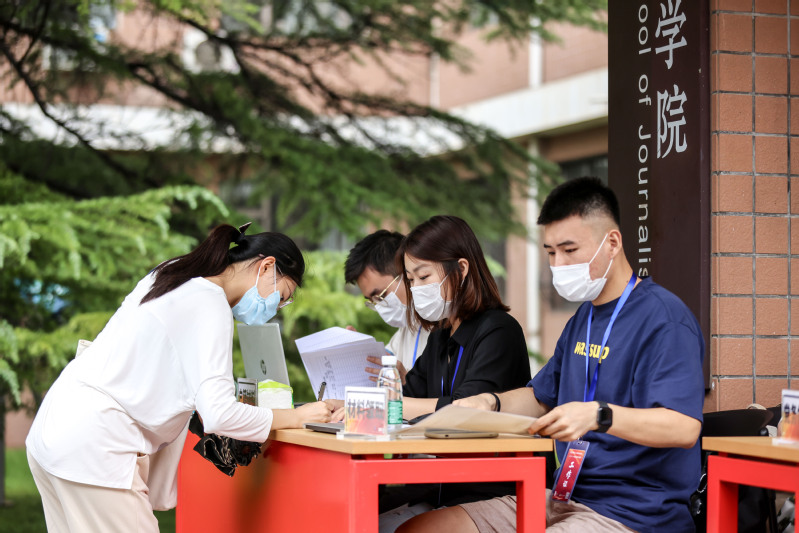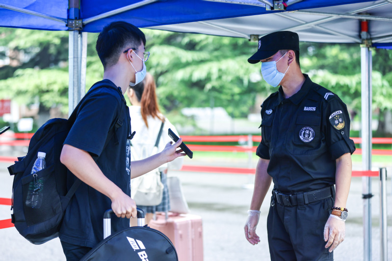 在迎新现场,尽管阴雨绵绵,各项工作依旧有条不紊。“同学,请出示北京健康宝、行程码、迎新二维码、核酸检测证明和录取通知书!”校园入口,安保人员逐一核验身份,新生在志愿者的帮助引导下,来到所在学院迎新点、学生公寓、学生活动中心等地,完成报到、公寓入住、信息采集核验等相关工作。