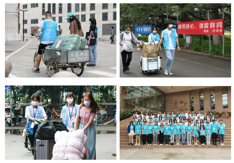清晨6点,校园里的“蓝马甲”已经在为新生的到来而忙碌着。173名志愿者分布在84个点位,引导新生办理报到手续,协助搬运行李,还当起了校园讲解员,耐心解答新生的各种问题。“接过你手中的行李,我们就是一家人了!”葛沛源是第三次参加迎新志愿服务,能给新生带来家一般的温暖,她感到无比开心。