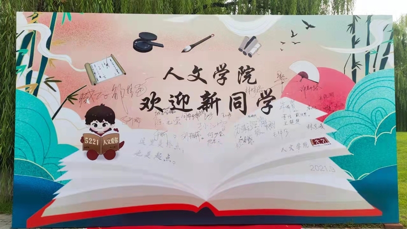 随风飘动的横幅、五颜六色的道旗、各具特色的学院迎新展板、充满童趣的主题玩偶……烘托出热烈喜庆的迎新氛围,让新生倍感温馨。