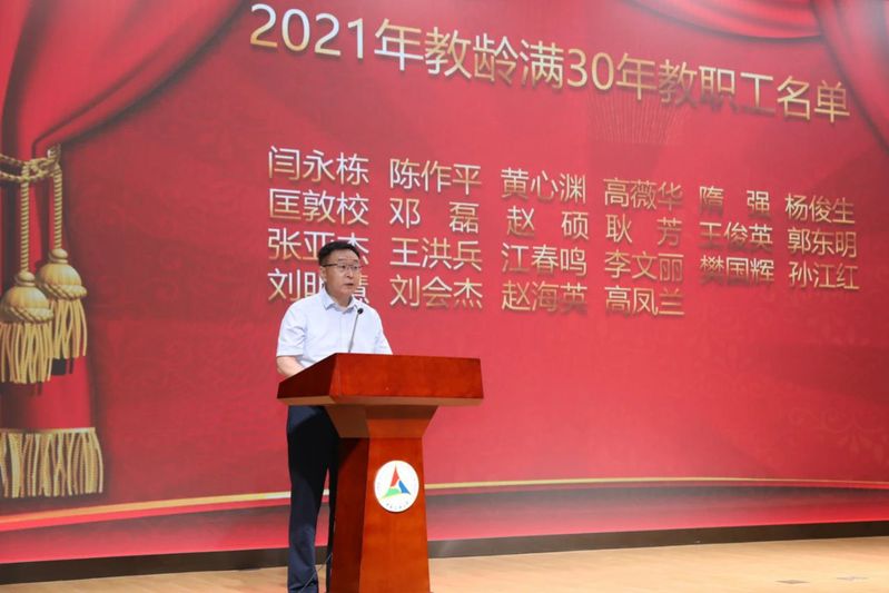 李新军副校长宣布2021年教龄满30年教职工名单、获奖教师名单