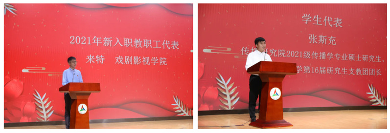 2021年新入职教职工代表来特、学生代表张斯充发言