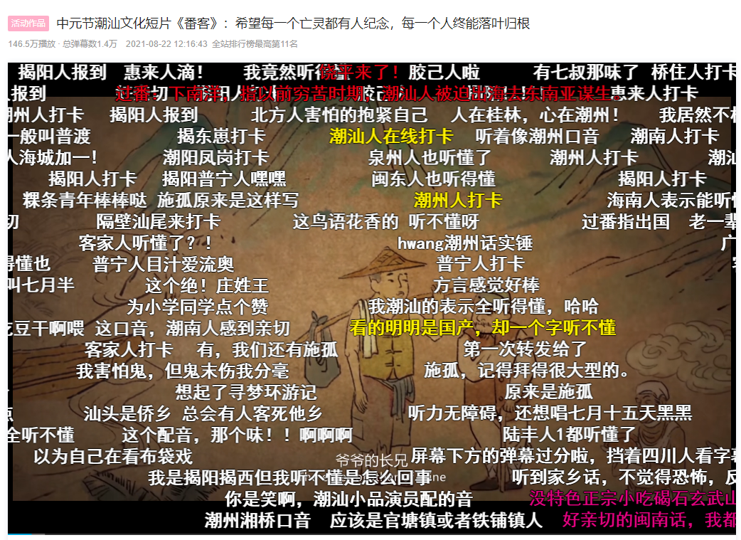 《番客》在B站播映后,许多网友表示,通过短片更加深入地了解到潮汕传统文化,并为之深深感动。