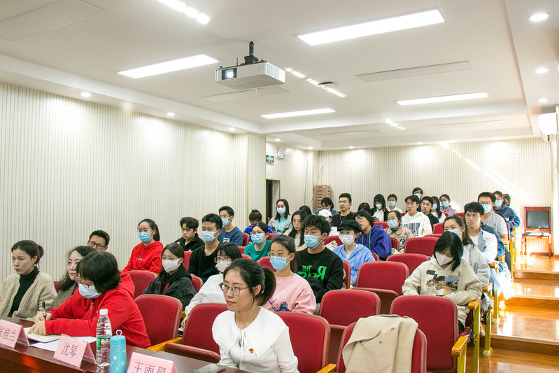 报告会开始前,师生一同观看了微视频《怀党前行,筑梦长歌》。短片用人物专访的形式,讲述了沈琴教授的人生经历。她年轻时曾在国防科委二十一基地从事核试验研究工作,后转业到福建省广播器材厂任技术员,最后回到中国传媒大学教书育人。现场同学深受触动,大家真切感受到了一位老党员矢志不渝的入党初心和为党奋斗的感人情怀。