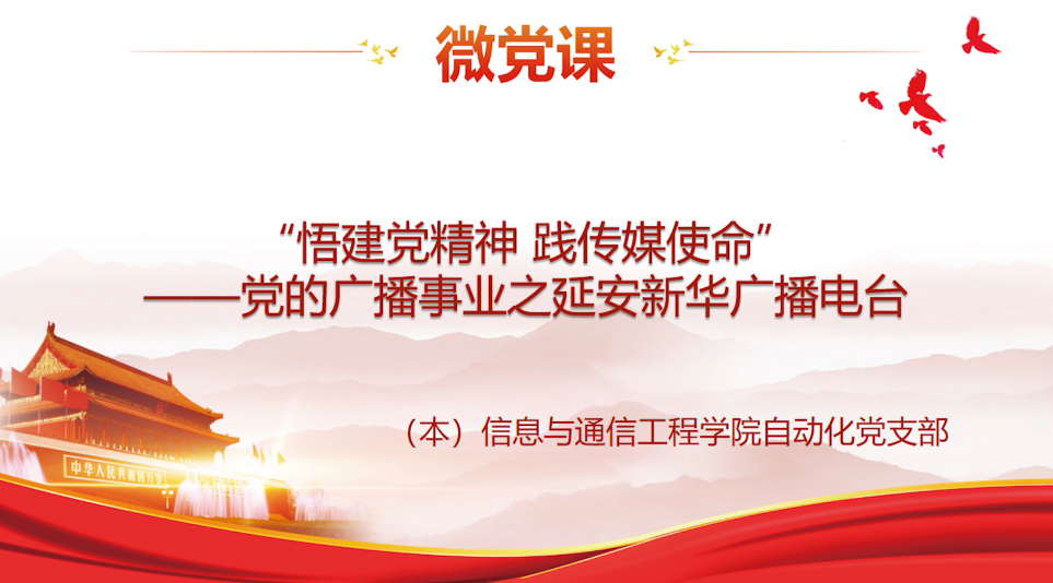在“录制一堂微党课”板块中,数字媒体技术党支部以“入党誓词中的党史党章和党员精神”为主线,通过深刻学习入党誓词,激励入党同志严格要求自己,牢记入党誓言,坚定为共产主义事业奋斗终身的信心和决心。学硕第二党支部以“学习新党章,践行新思想”为题,学习了解了党的十九大对党章的修改情况。自动化党支部以“党的广播事业之延安新华广播电台”为主题,讲解了党领导下的延安新华广播电台的发展历程。