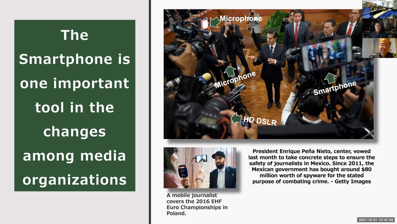 10月21日,密苏里大学新闻学院副教授Steven Rice以“Where Is Convergence Journalism in 2020-2021”为题展开第三场讲座。Steven Rice就本年度全球媒体融合新闻的发展与重要内容进行了讲解,重点介绍了新闻制作工具和新闻组织的变化对新闻报道的影响,以及密苏里新闻学院致力于培养“全能记者”的教学理念。