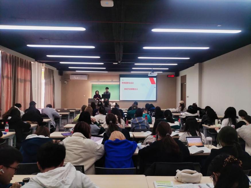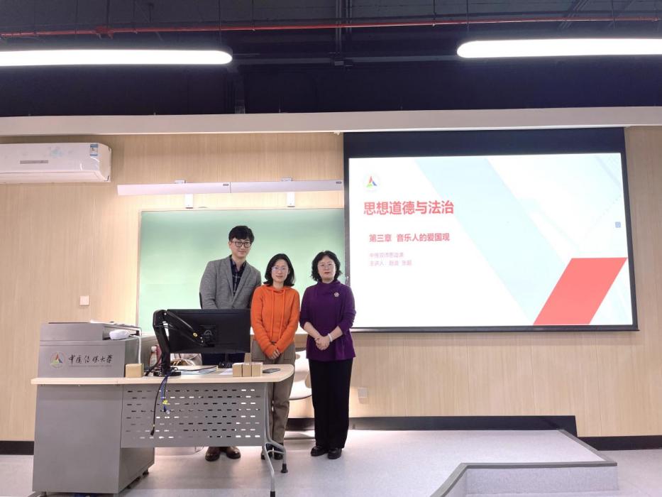 此次课程由马克思主义学院赵波老师和音乐与录音艺术学院张超老师同堂讲授,是思政课教师与专业课教师“双师”系列教学课程的又一次实践探索。两位老师围绕思政课的爱国主题进行备课,重点将课程思政内容应用到思政课建设,科学设计授课机制。