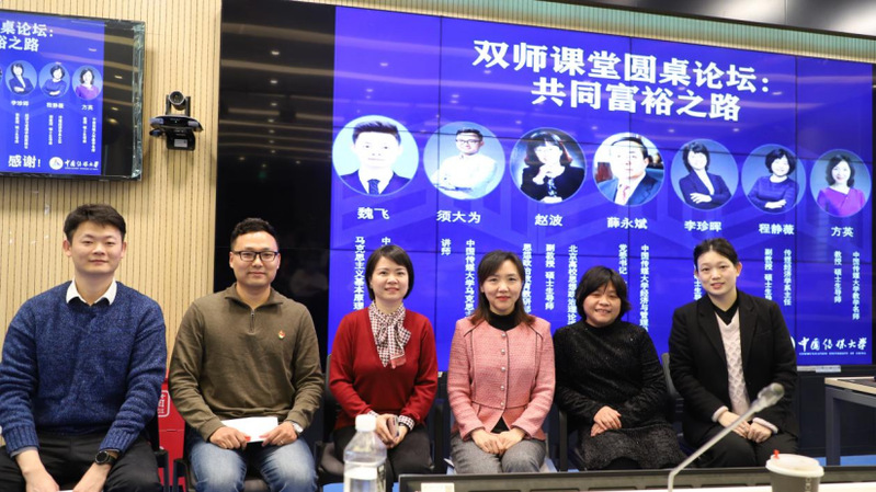 (通讯员 刘静忆 赵波 朱玉洁 摄影 朱玉洁)为深入学习贯彻十九届六中全会精神,深刻理解《中共中央关于党的百年奋斗重大成就和历史经验的决议》,11月17日,我校“双师”教学团队来到经济与管理学院传媒经济系“财政学”课堂,以“共同富裕之路”为主题开展双师课堂圆桌论坛,探讨我国向第二个百年奋斗目标进军的共同富裕之路,为2019级传媒经济、国际文化贸易、数字经济专业的同学们带来了一堂生动新颖的专题思政课。