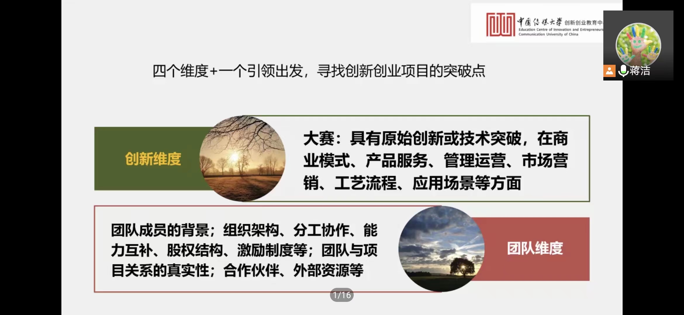(通讯员 纪鸿阳)日前,由创新创业教育中心主办,经济与管理学院双创协会承办、学院学生会协办的第三期“大创”系列指导讲座顺利举行。本次讲座聚焦大学生创新创业计划和“互联网+”大赛的相关注意事项,由创新创业教育中心蒋洁老师主讲,讲座采用线上直播的方式,共有近200位同学参与。