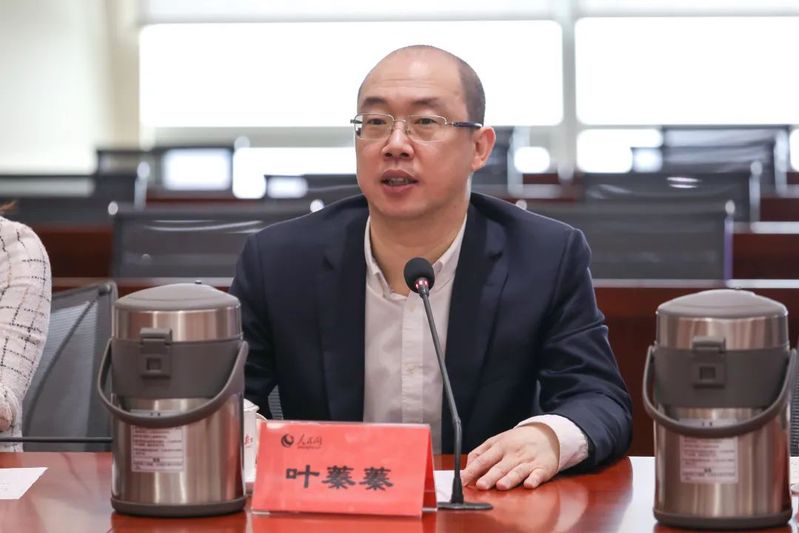叶蓁蓁董事长热情欢迎廖书记一行的到访。他表示,长期以来,人民网同中国传媒大学合作密切,领域广泛,成果丰硕,去年开展的“红色云展厅”项目通过创新性的系列融媒体产品,传播红色文化,传承红色血脉,在各方面产生了广泛的积极影响。
