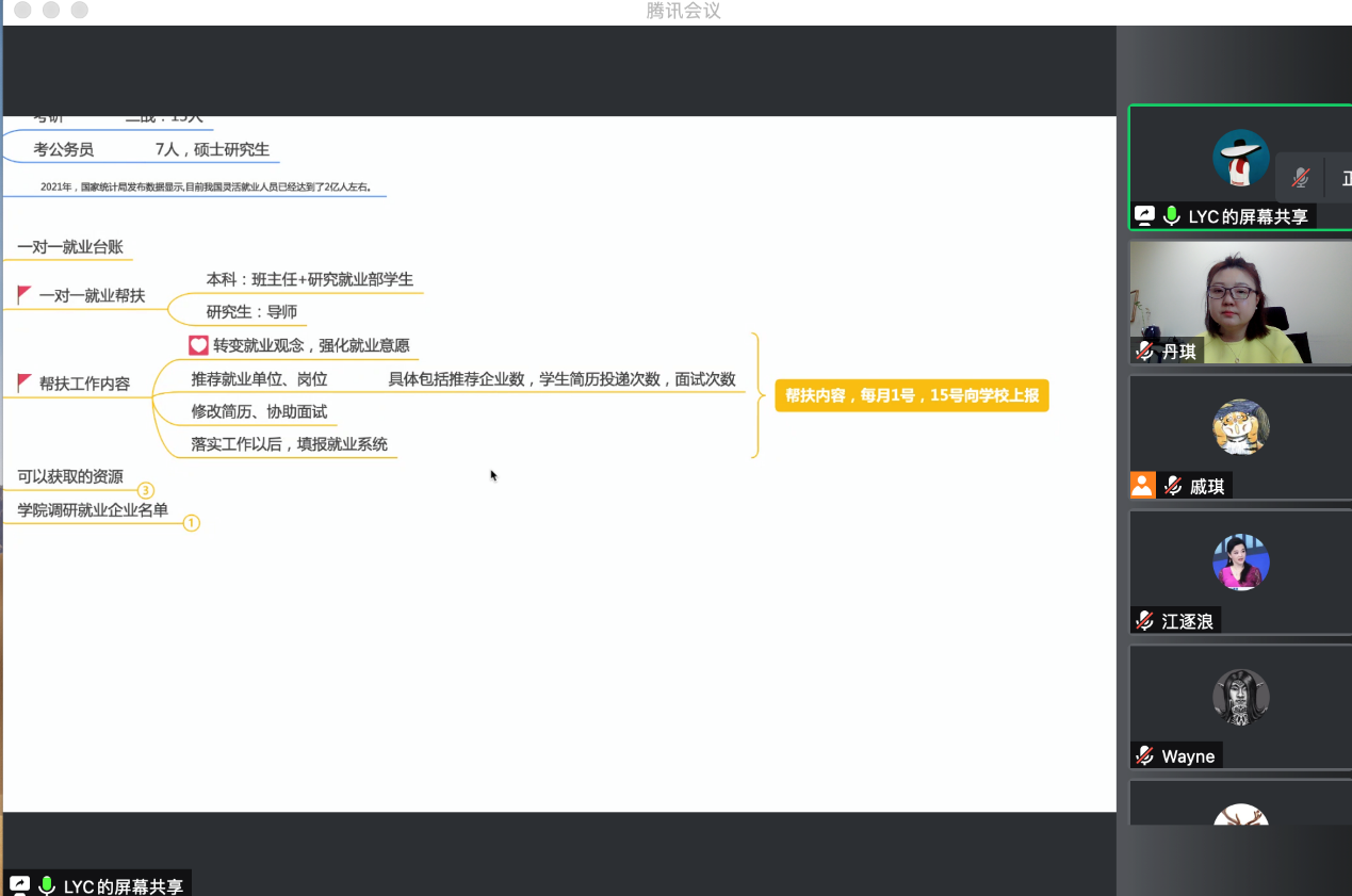 郑丹琪副书记结合学院学生的特点和现阶段就业现状,明确了2022届就业工作小组的工作内容。一是学院就业工作联系人定期汇报就业进展数据,确保就业工作稳步推进;二是落实毕业班班主任、毕业生导师的就业帮扶责任,引导学生转变就业观念,提升就业意愿;三是要求学生就业数据填报的及时、准确,尽力帮助学生解决就业过程中面临的各类问题。
