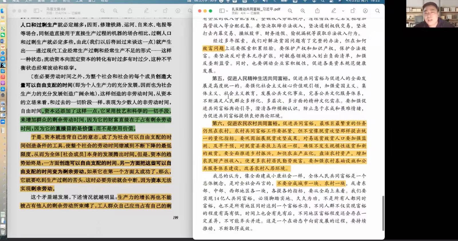 张当博士在讲授马克思恩格斯等经典作家对“共同富裕”的论证以及共同富裕思想在当代中国的发展的基础上,还分享了自己在阅读原著过程中的感受。