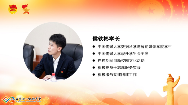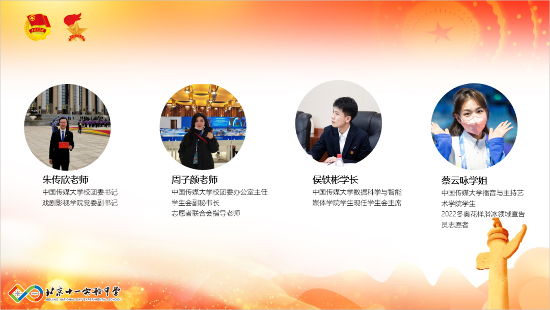 (通讯员 周子颜)为进一步落实“全团带队”政治职责,加强团队衔接,6月1日下午,中国传媒大学师生应中国少年先锋队北京十一实验中学工作委员会邀请,与北京十一实验中学师生相约云端,以“告别童年·拥抱青春”为主题,开展了一次特别的少先队活动课。我校团委书记朱传欣、办公室主任周子颜,2019级数据科学与大数据(传媒大数据方向)本科生侯轶彬、2020级播音与主持艺术专业本科生蔡云咏参加活动。