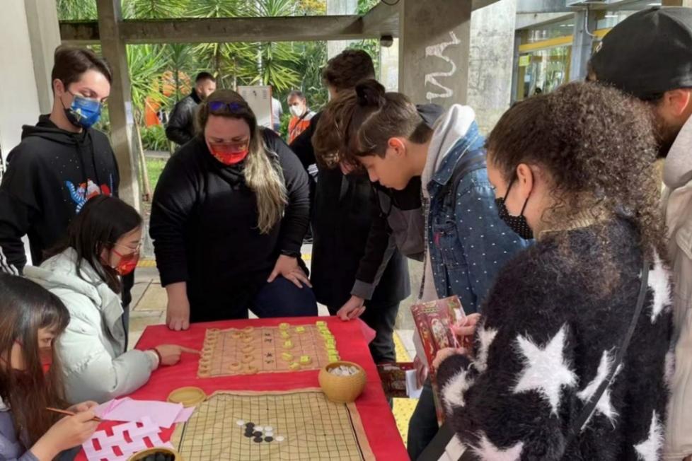 孔子学院志愿者教师罗翔予让巴西学生第一次认识“楚河汉界”