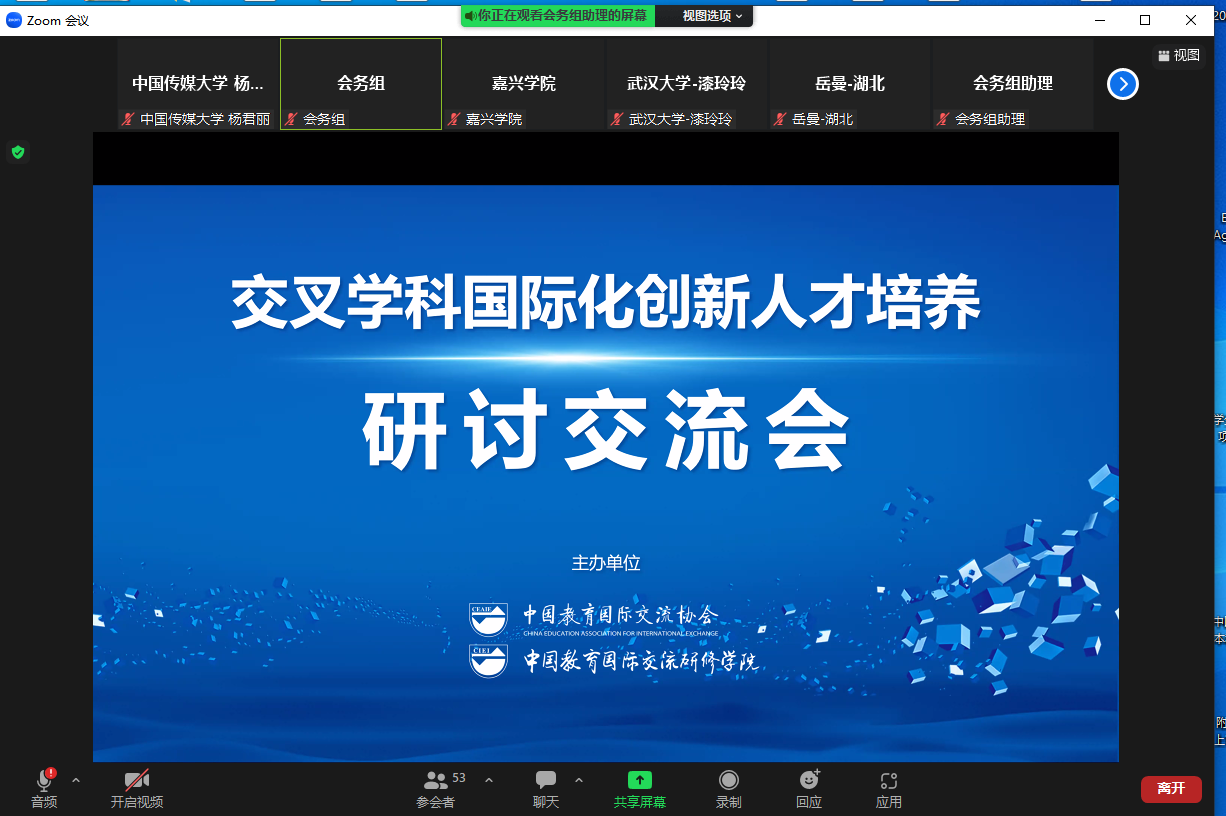 (通讯员 杨君丽)为深入探索交叉学科国际化创新人才培养路径,创新国际化人才培养模式,以高水平教育对外开放助力高质量教育体系建设,10月12日,我校国际交流与合作处、本科生院参加了由中国教育国际交流协会主办、中国教育国际交流研修学院承办的“交叉学科国际化创新人才联合培养计划研讨线上交流会”。