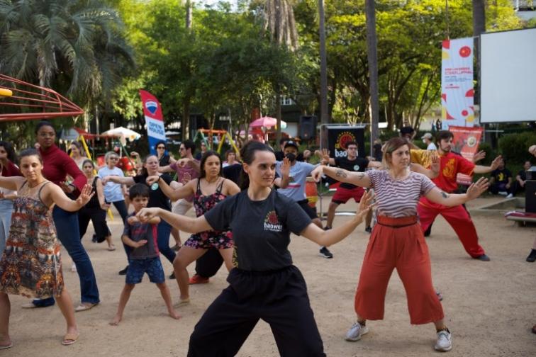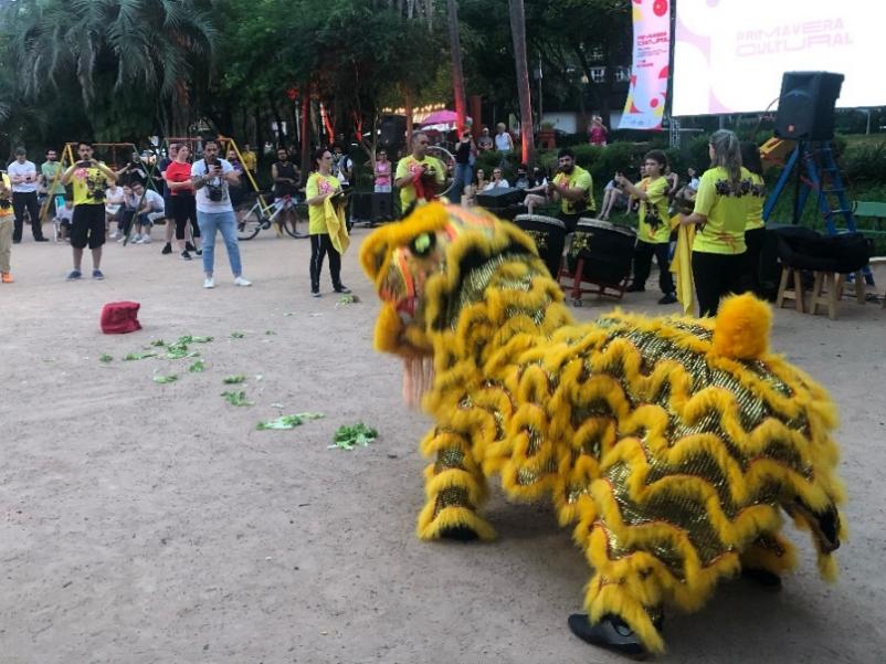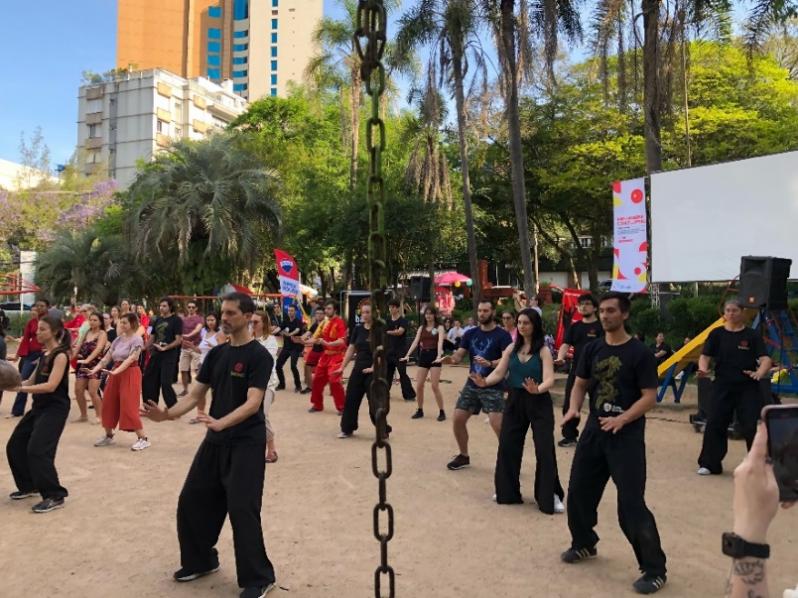 本次活动在南大河州首府阿雷格里港市中心具有百年历史的Maurício Cardoso广场上进行,经过前期紧张周密的准备工作,19日下午4点,活动序幕隆重开启。孔子学院办公室主任Athos博士主持了活动的开幕式。在中国文化展示环节,中国画工作坊、书法工作坊、锣鼓表演、舞狮表演、中国功夫表演、特色美食展等等具有中国文化特色的活动依次推出,丰富多彩的文化展示和互动体验不仅让前期注册参加的巴西民众沉浸其中,更吸引了周边更多的市民源源不断地涌入广场并流连忘返。