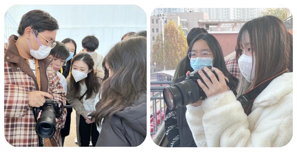 当天下午,几位大二的港澳台学生带领新生拍摄校园。21级戏剧与影视学院摄影专业的邓梓维同学还带着专业的设备,为同学们答疑解惑。