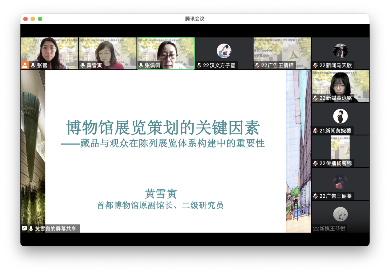 黄雪寅老师作为博物馆的管理者和博物馆文化的传承人,为同学们详细讲解了博物馆文化的三条底线、博物馆人的角色以及博物馆文化的精髓,让同学们了解了一个博物馆所具有的文化意义。黄老师为同学们展示了不同博物馆的展厅照片及今年国博会的情况,并对我校传媒博物馆的设计及展品陈设做出赞许。黄老师希望对博物馆有兴趣的同学毕业后能够成为博物馆研究的一员。讲座结束后,黄老师对于学生们提出的问题给予了耐心解答。