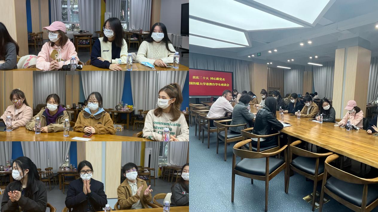 10月17日,中国传媒大学境外学生教育中心在21号楼C区大厅举办了主题为“喜庆二十大,同心跟党走”港澳台学生座谈会。国际传媒教育学院(海南国际学院)(境外学生教育中心)党委书记张洪生、院长金雪涛及来自不同专业的11名我校港澳台学生代表参加了此次座谈会。座谈会由副院长张佩佩主持。