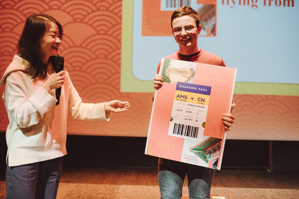 文艺表演之后的有奖竞答环节将现场气氛再次推向高潮。孔子学院中方院长蒋佳惠为获奖嘉宾颁奖,并向大家介绍了孔院的各类课程,她热情地欢迎各界人士前来体验。她表示,格罗宁根孔子学院将继续提供更丰富的课程和活动,帮助中文学习者和文化爱好者了解中华文化。