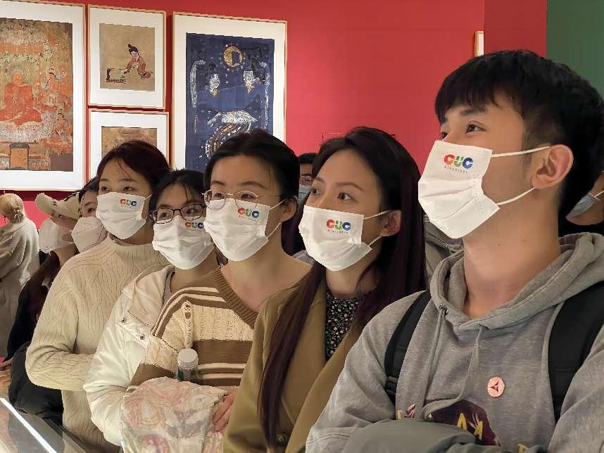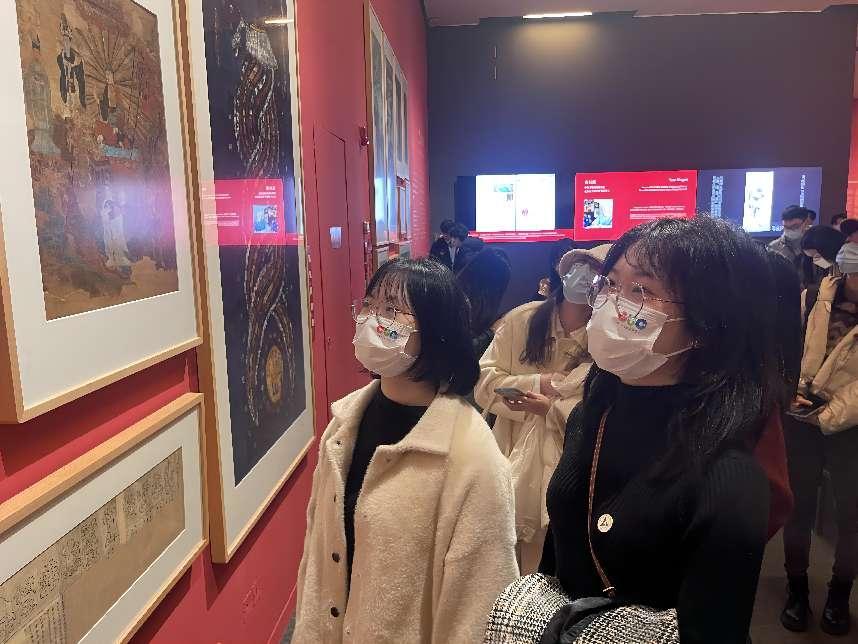 师生代表认真观看展览,在光影变换中近距离欣赏传世名画的色彩笔触,品味着石窟造像的精雕细琢,重温了中国古代绘画悠长的发展历程,多角度立体化的欣赏着中国传统文化之美。同学们深受触动和启发,表示要在未来的创作中,更好地融入中华传统文化,讲好动人的中国故事。