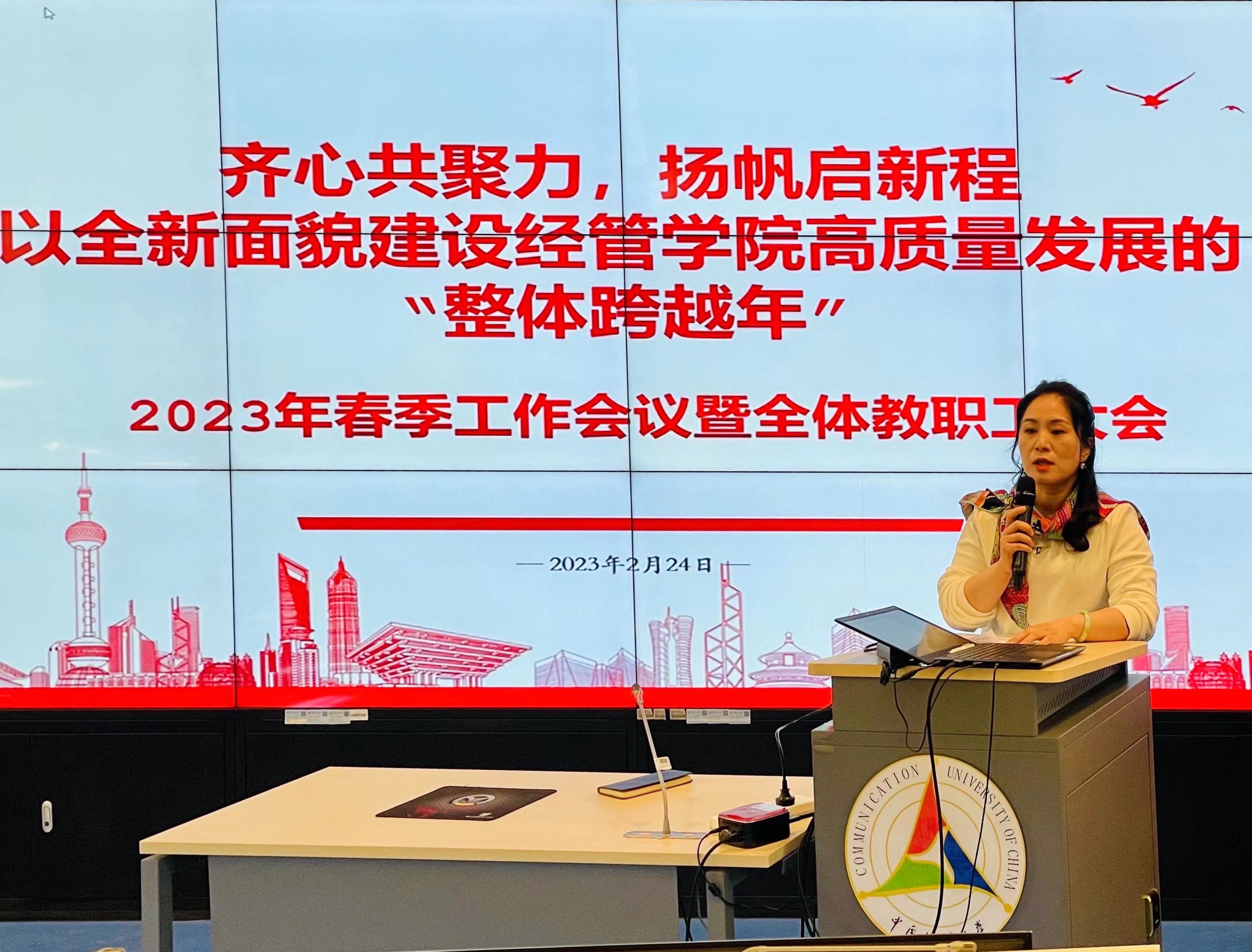 (通讯员 韩芮莎)2023年2月24日,经济与管理学院2023年春季学期教职工大会在33号楼阶梯教室召开,大会传达学习我校春季工作会议精神,部署新学期工作。大会由经济与管理学院党委书记王晓丽主持,学院全体教职工参加。