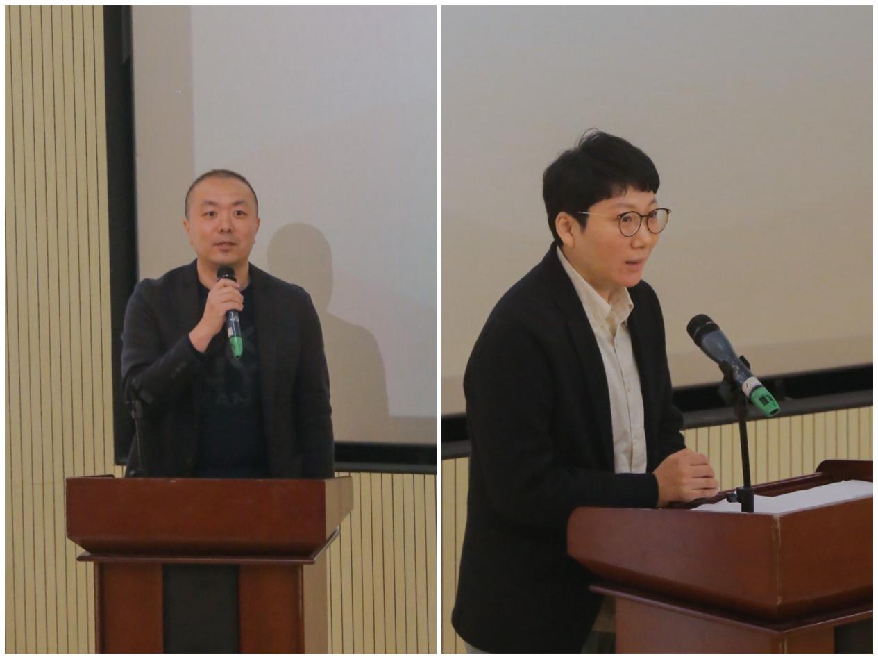 中央广播电视总台财经节目中心《对话》栏目制片人齐文星、中国电影股份有限公司中影创作部原创开发处处长范琳琳作为校外导师代表发言。他们各自分享了自己的工作经历,认为通过“开学第一课”和“研究生校外实践导师”聘任活动可以深深体会到研究院对学生培养和就业工作的用情用心,并积极表态将利用自身优势,建起一座实习就业的桥梁,帮助同学们在各行各业发光发热。