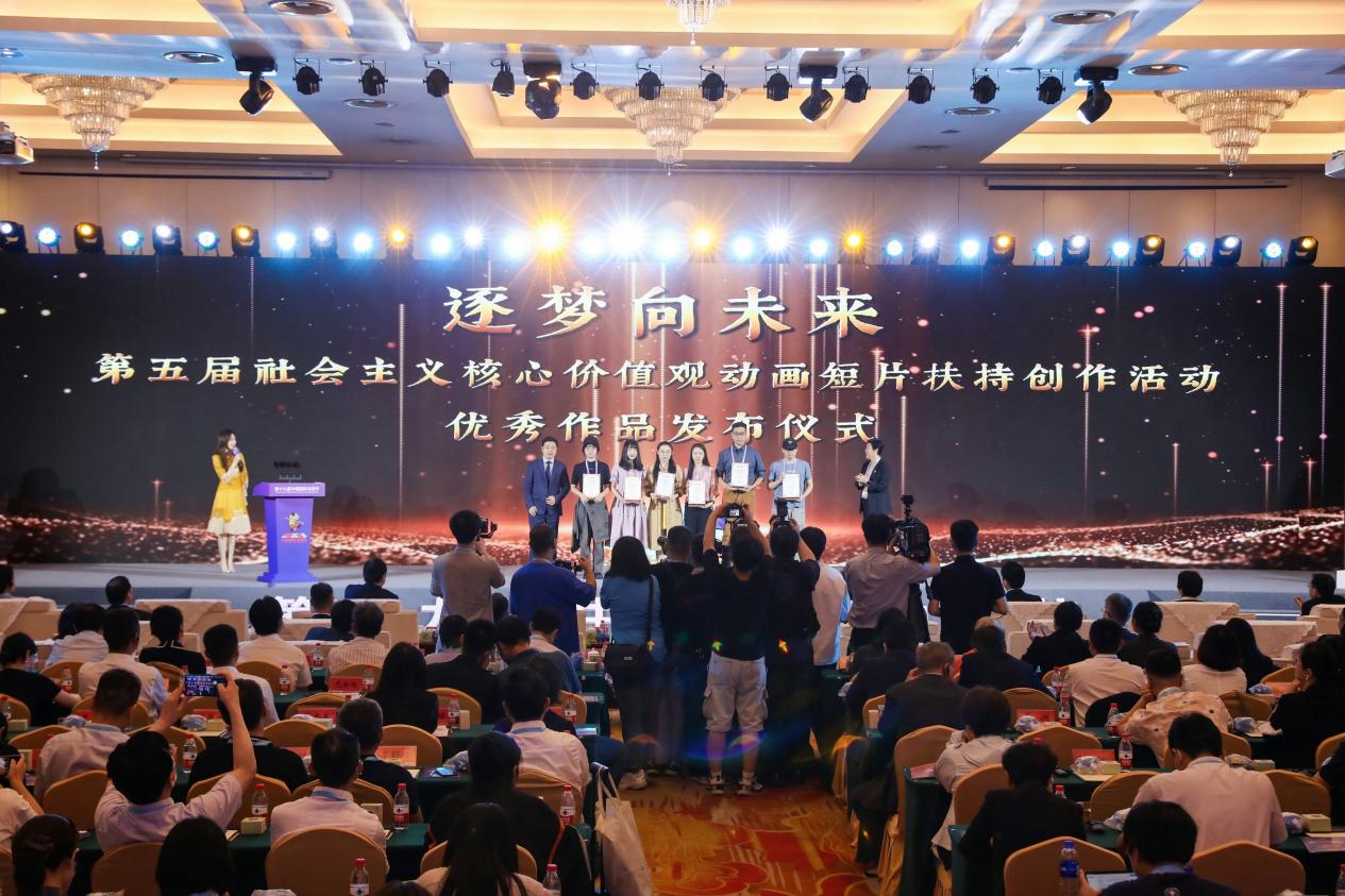国家广播电视总局副局长、党组成员杨小伟,中央广播电视总台副台长胡劲军致辞。中国传媒大学党委副书记李众对“逐梦向未来——第五届社会主义核心价值观动画短片扶持创作活动”进行了介绍。仪式公布了35部优秀作品名单和12个优秀组织单位。国家广播电视总局宣传管理司副司长李忠志、中共浙江省委宣传部副部长范庆瑜共同为一类优秀作品作者颁发荣誉证书。