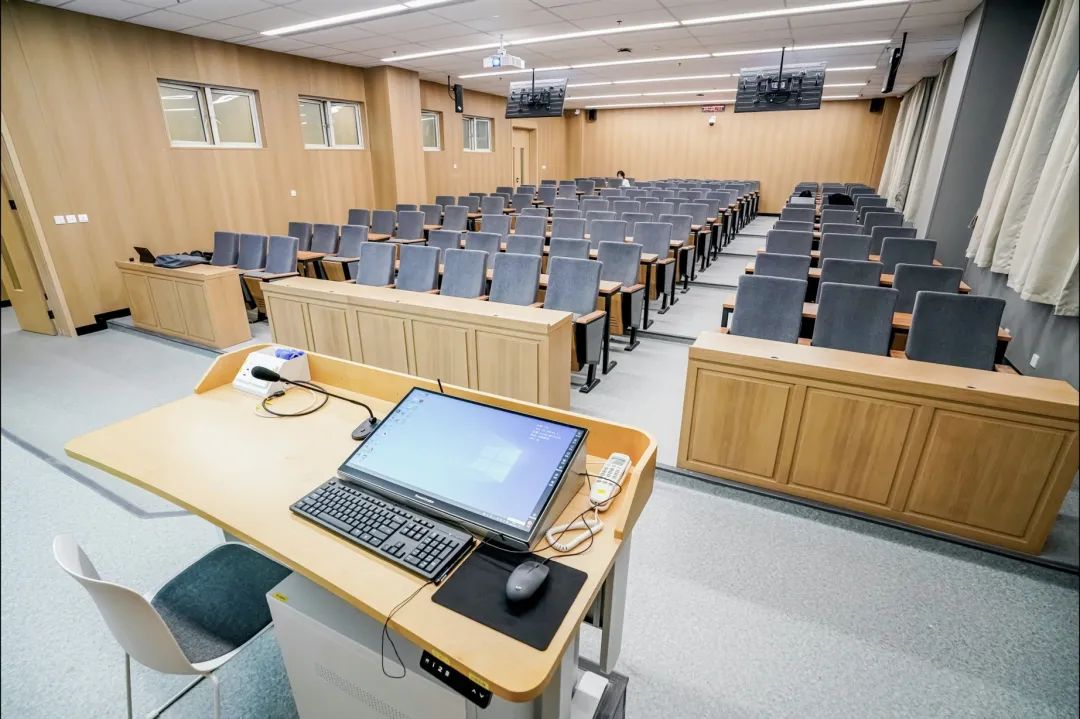 多功能报告厅分别位于1层和2层,采用全新升级的画框幕搭配智能音响系统,为师生带来沉浸式声画体验。辅助侧屏、软包座椅、多插孔等设计,也极大提升了师生教学的便捷度和舒适度。