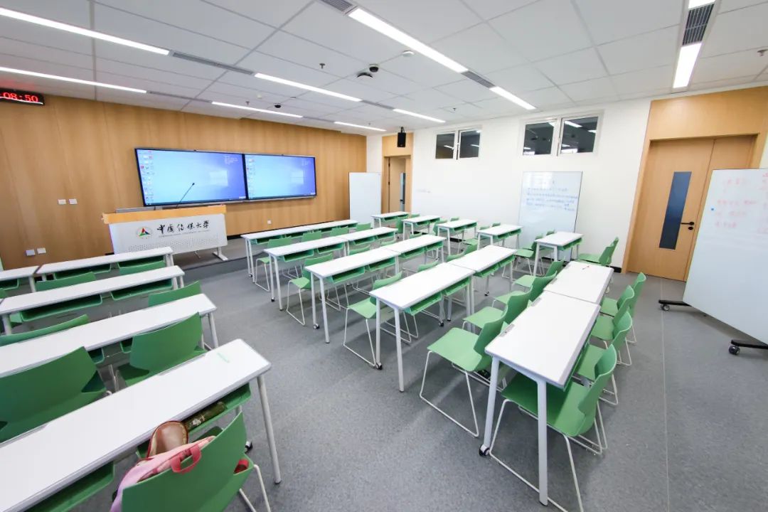 48号楼的智慧化升级全面提升了我校教学环境。整体装修简约大气,让人眼前一亮;教室里无论是音箱、触控屏等软硬设备的升级,还是讲台高度调节、干湿黑板擦等贴心小细节,无不体现着学校“一心为师生”的理念。