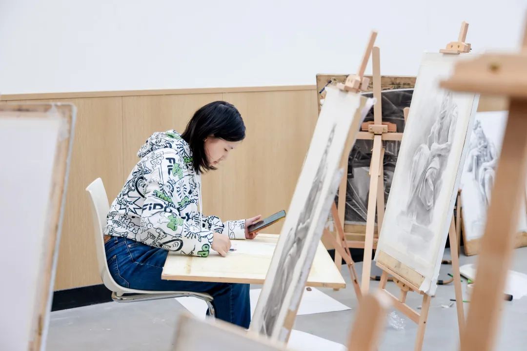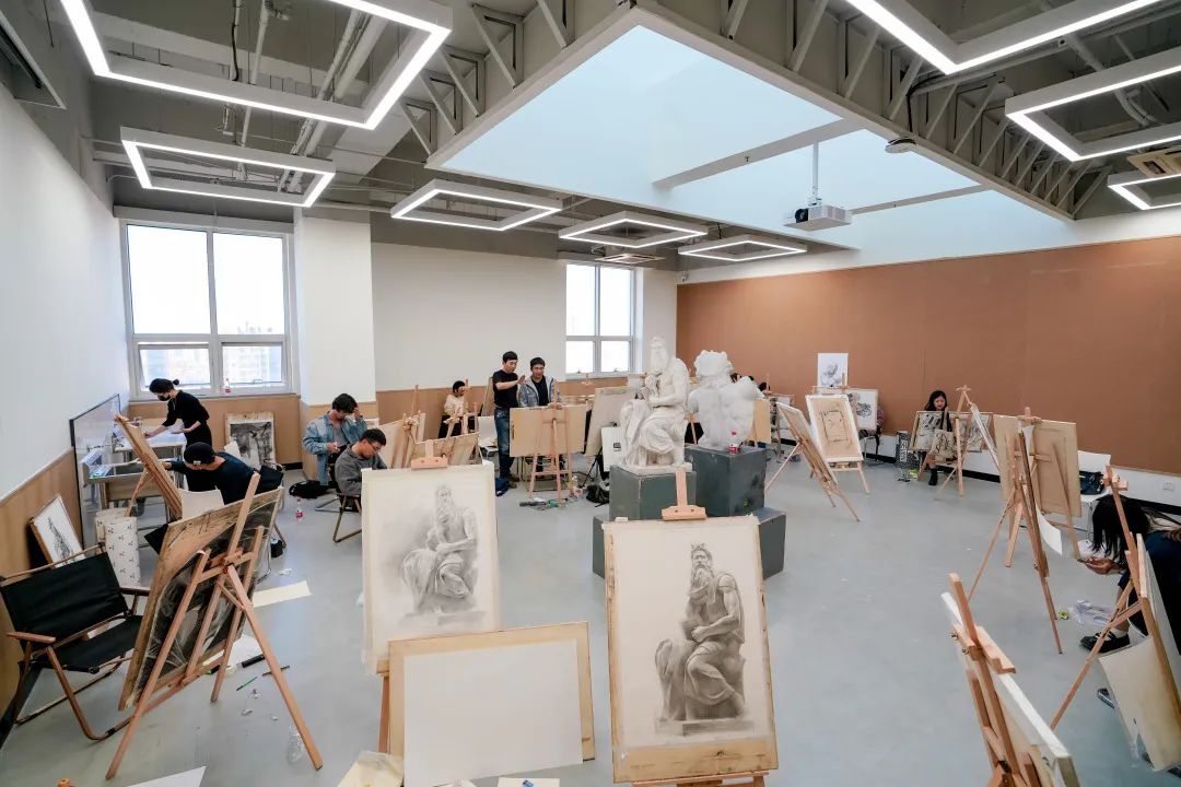 将12-13层打造为美术与设计教学空间,包括公共美术教室和中国画创新空间,为师生创作、研讨和作品存储提供了空间。