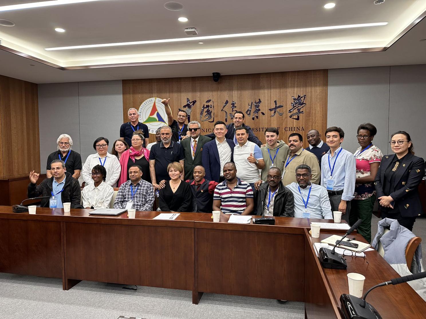 中国前驻冈比亚大使马建春大使(第二排左六)讲授“中国经济改革以及中国式现代化”,使记者们更加清楚地了解到了中国经济改革所产生的深远影响。