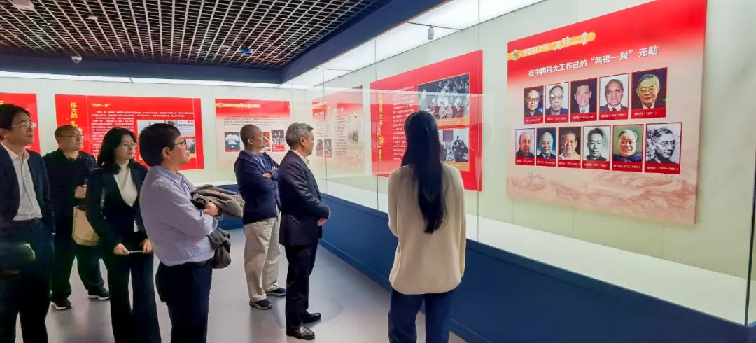 中国科大博物馆内,调研团参观了“纠缠——国家自然科学一等奖项目视觉艺术展”与“中国科大与两弹一星纪念展”。“热爱祖国、无私奉献,自力更生、艰苦奋斗,大力协同、勇于登攀”的“两弹一星”精神将成为推动我校全面实施“三个跨越”战略任务的强大精神动力。