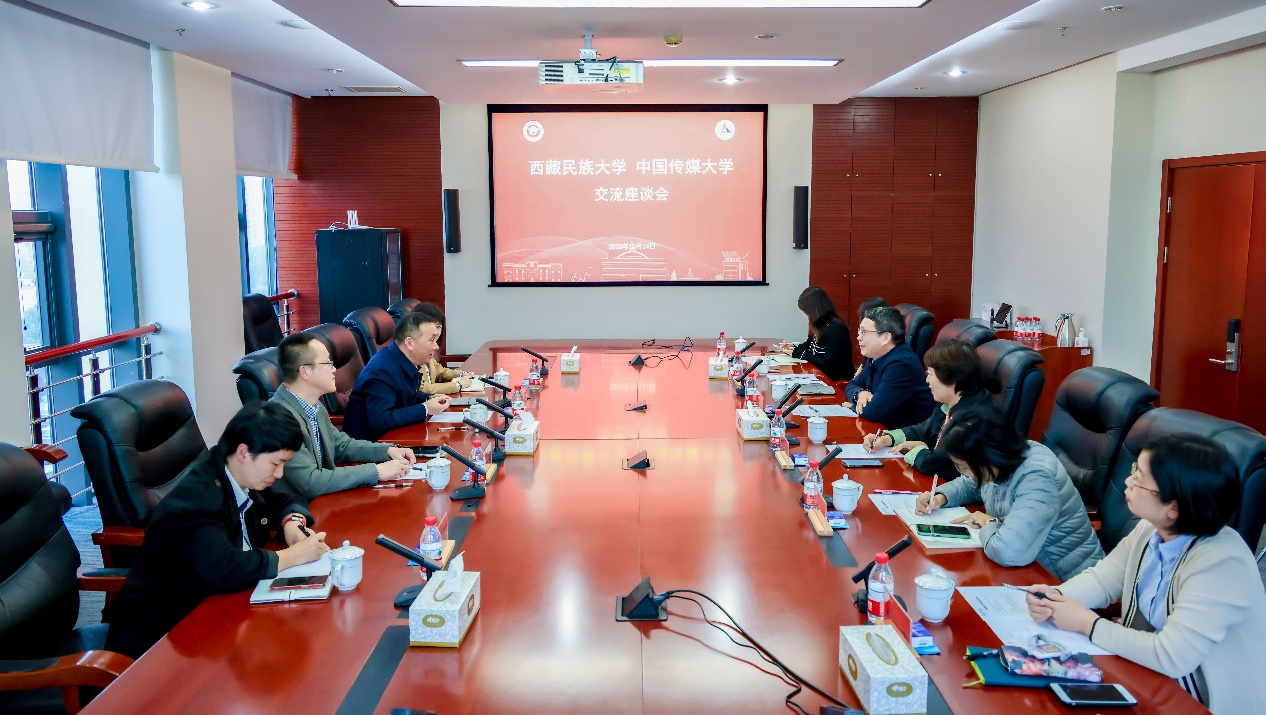 西藏民族大学党委(学校)办公室、教务处、新闻传播学院,中国传媒大学电视学院、党政办公室、招生处、本科生院、国内交流与合作处(校友工作办公室)等部门负责同志参加座谈交流。