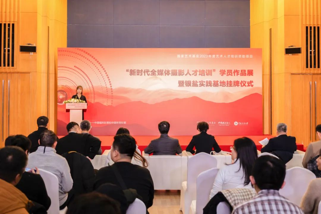 段芝璞在致辞中表示,党的十八大以来,习近平总书记多次强调要发扬工匠精神,加快建设一支知识型、技能型、创新型产业工人大军,培养造就更多大国工匠和高技能人才。此次中国传媒大学主持的《新时代全媒体摄影人才培训》项目作为国家艺术基金2023年度艺术人才培训资助项目之一,打破院校藩篱,为全国摄影人搭建起共享创意、学习交流的平台,是对新时代全媒体摄影专业人才培养模式的有益探索。今天会议现场展示的学员作品,既有新时代新图景的宏大叙事,又有平凡人普通事的感人瞬间,既有传统工艺,又有新技术的运用,这便是此次项目成果的最好见证。