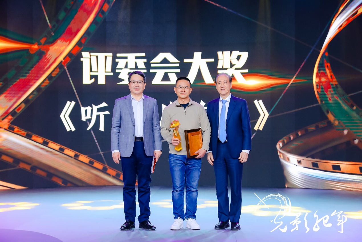 《听,鸟儿在叫》获评委会大奖,中国科学院院士、中国科协名誉主席韩启德和中国传媒大学校长张树庭为评委会大奖获得者颁奖